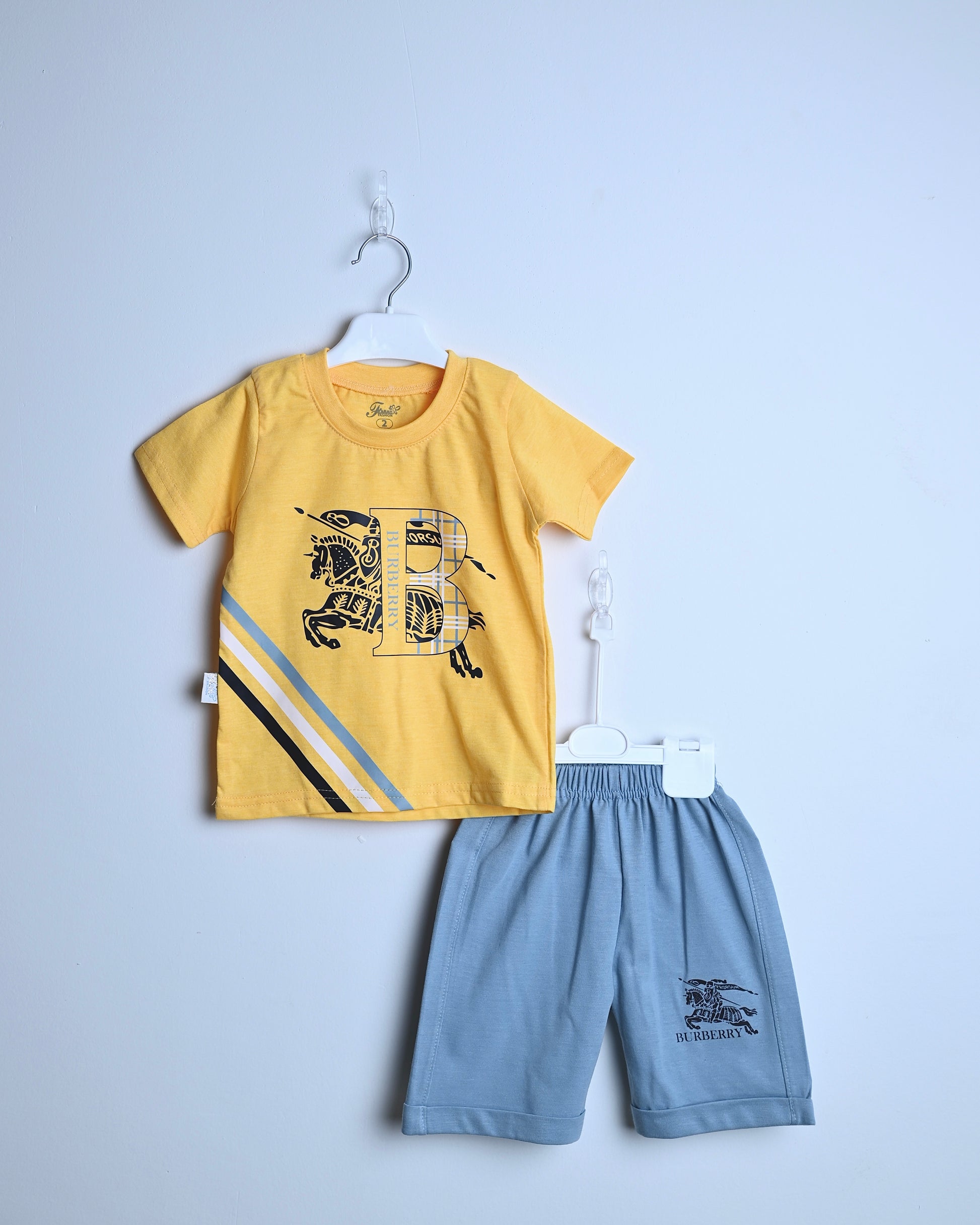 a lightweight T-shirt and comfy shorts, made from soft, breathable cotton fabric, perfect for all-day play and outdoor fun.